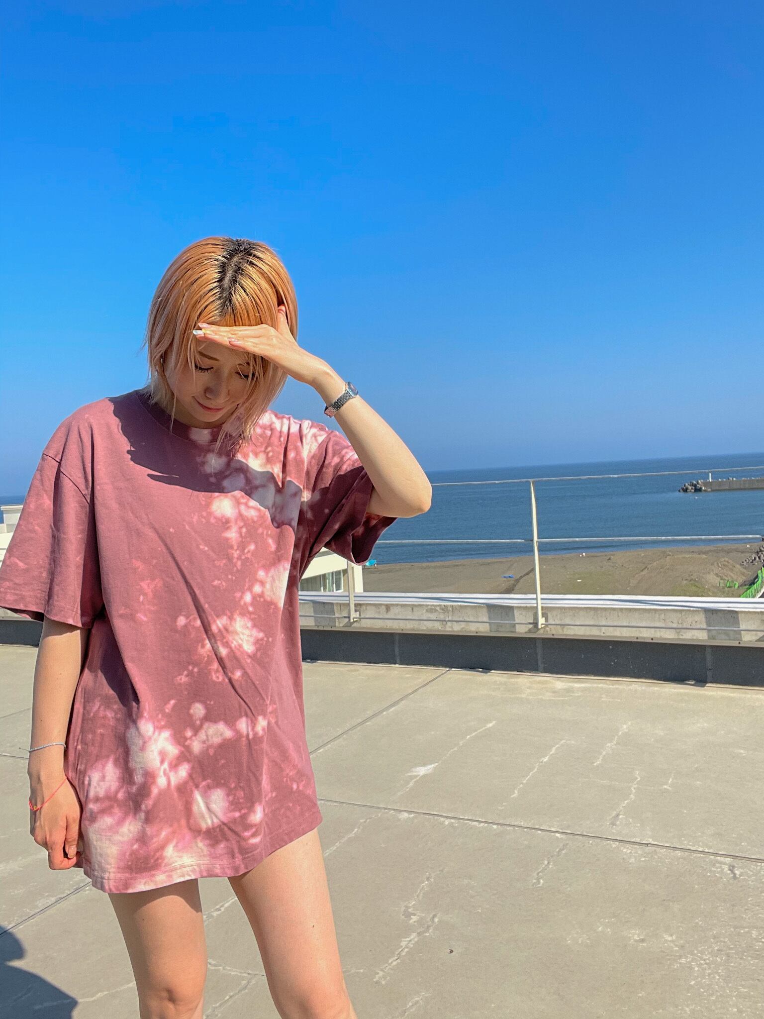 落ち着いたカラーのTシャツをブリーチ加工しました♪